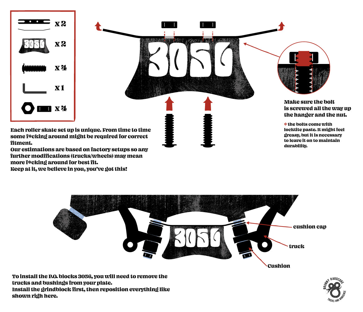 The Brunny P.O. Blocks 3056 V1.2 are designed for skaters of all skill levels from beginner to expert shredder to send it. The P.O. Blocks 3056 V1.2 aim to get you stalling, sliding and grinding with confidence and security. The design of the P.O. Blocks 3056 V1.2 delivers a wide surface area for stability and control, smooth edges to eliminate wheel bite and a curvature to lock into the coping. Using the slickest material known to humankind, these blocks will have you sliding with ease!